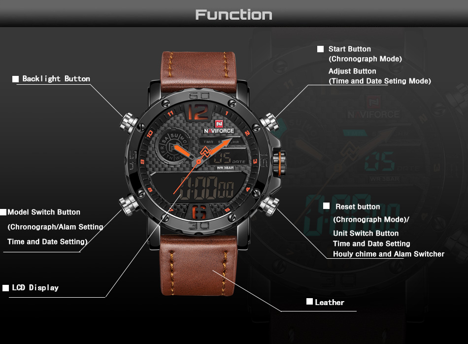 ساعة أصلية من العلامة العالمية NAVIFORCE NF-9134 Marron بلون جذاب وأنيق