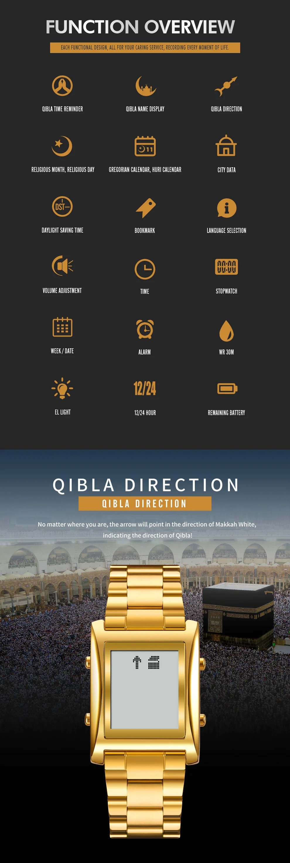 ساعة مواقيت الصلاة SKMEI 1815 الأصلية مقاومة للماء والخدش مثل الحرمين تماما