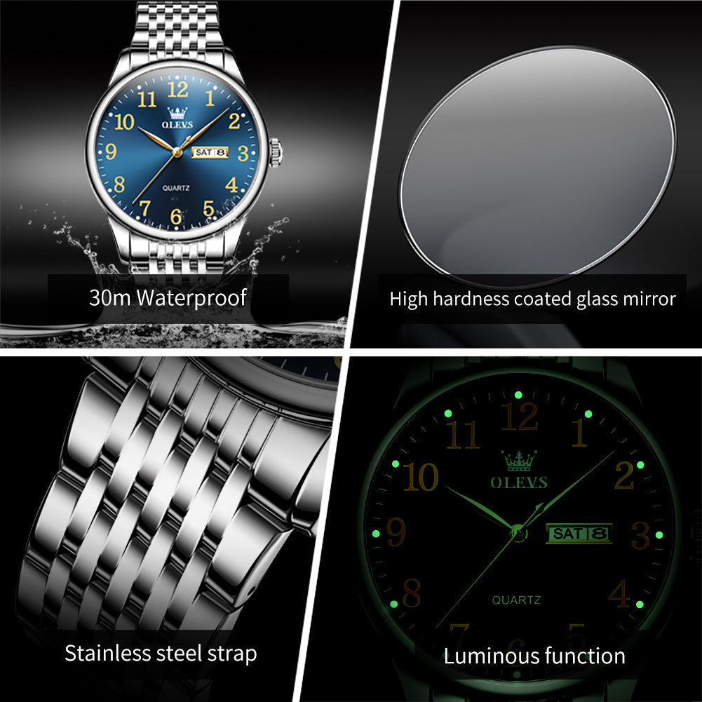 ساعة أصلية رجالية من العلامة العالمية OLEVS 5535 مقاومة للماء والخدش بـ 3 ألوان